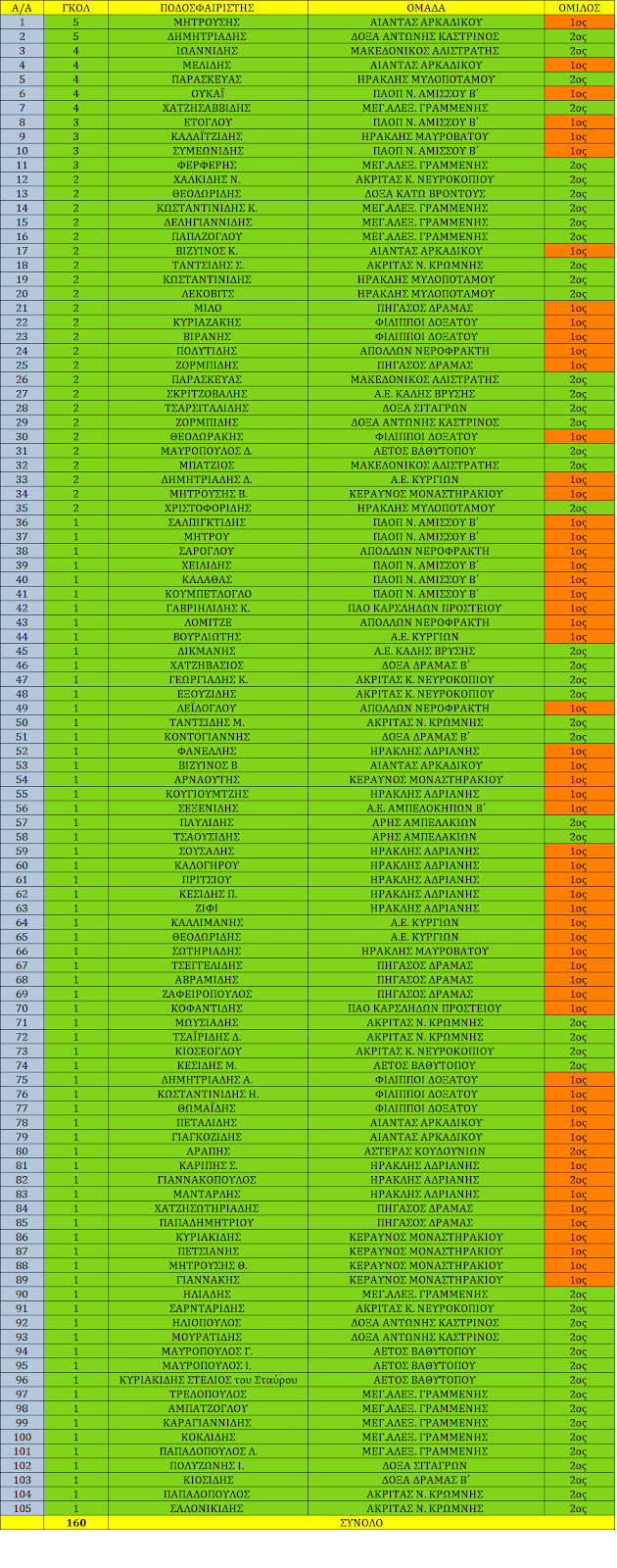 Σαράντα έξι (46) γκολ σημειώθηκαν το απόγευμα της Κυριακής στους έντεκα αγώνες της Β΄ΕΠΣ Δράμας (απομένει η αναμέτρηση Κάτω Βροντούς - Δόξα Δρ. Β΄) και έτσι φθάσαμε συνολικά στα 160 τέρματα απο την αρχή της αγωνιστικής περιόδου !