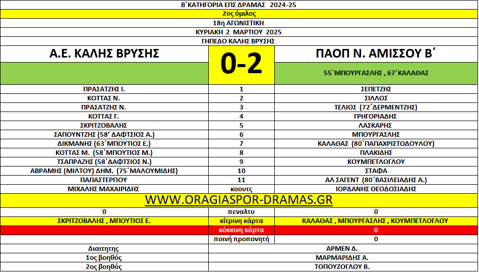 Β΄ΕΠΣ Δράμας (2ος όμιλος) : τα ''φύλλα αγώνα'' της 18ης αγωνιστικής! Συνθέσεις , σκόρερς , πέναλτι , διαιτητές , κίτρινες και κόκκινες κάρτες